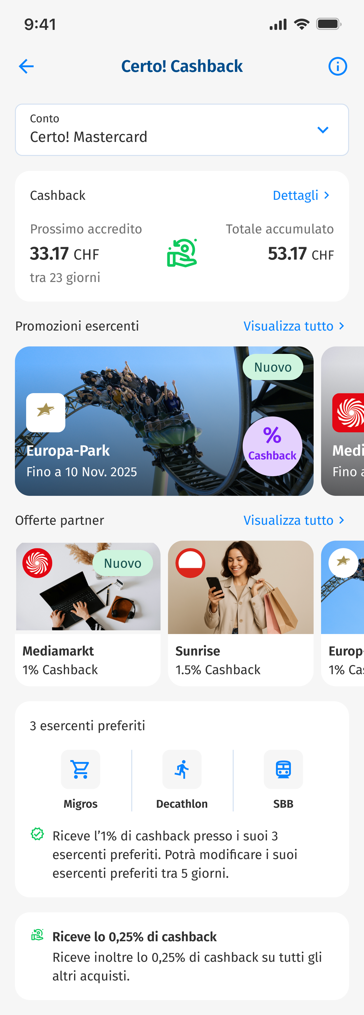 Approfitti subito di offerte di cashback aggiuntive ed esclusive presso commercianti selezionati.
